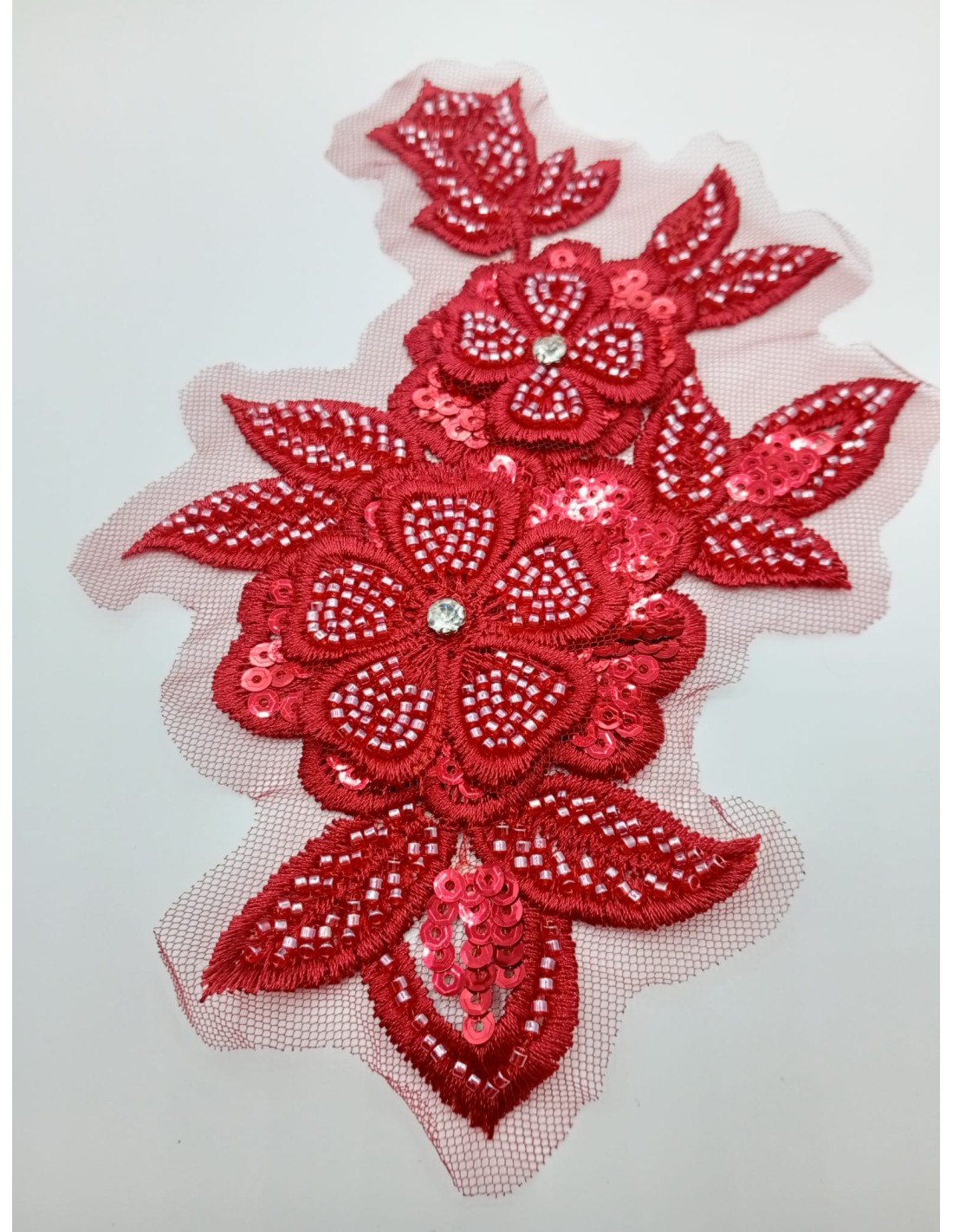 Aplicación de tul con bordados de abalorios y brillos con motivos florales . Mide aproximadamente 12 cm por 21 cm. ideales para customizar cualquier jersey, vestido o prenda.