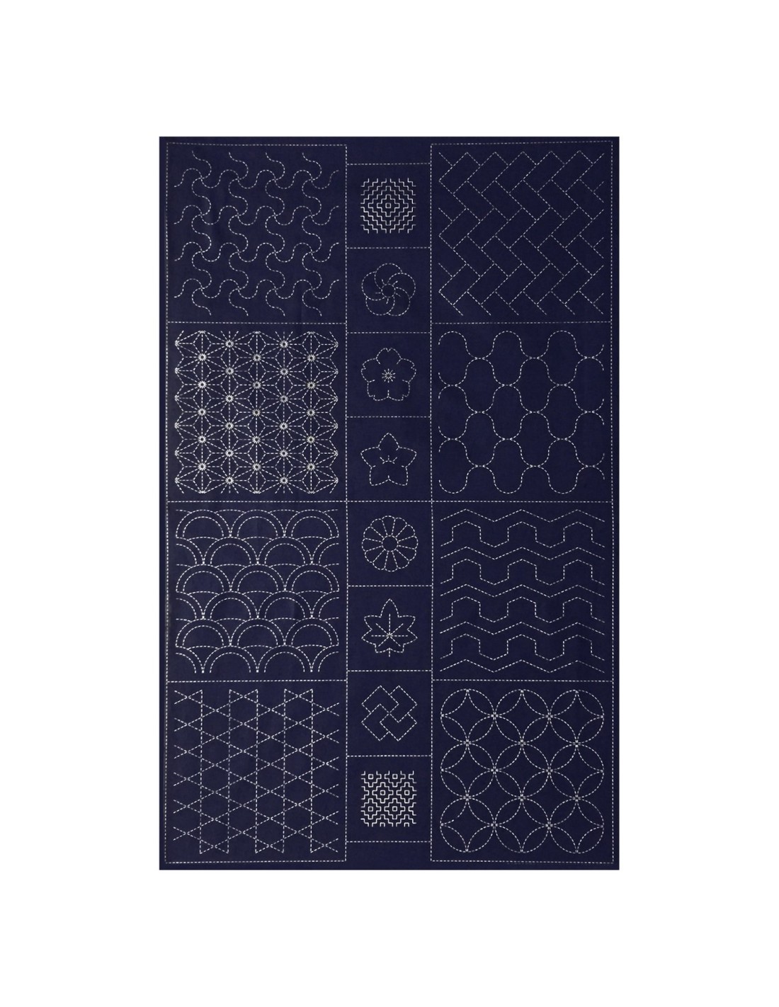 Panel de tela especial para sashiko impresa con distintos tipos de puntadas de sashiko. Tela en azul de algodón 100%. Tras aplicar el bordado sobre los puntos marcados, la tela se puede lavar. la tela estampada solo en agua tibia y jabón para eliminar las líneas una vez que se haya completado todo el trabajo de sashiko. Son ideales para cuando te apetece bordar, sin tener que fijarte mucho, con la pauta ya impresa y preparada .Podéis hacer falda, chaleco, bolsos, neceseres, estuches de costura, cojines, incluso un quilt de sofá con ellos.