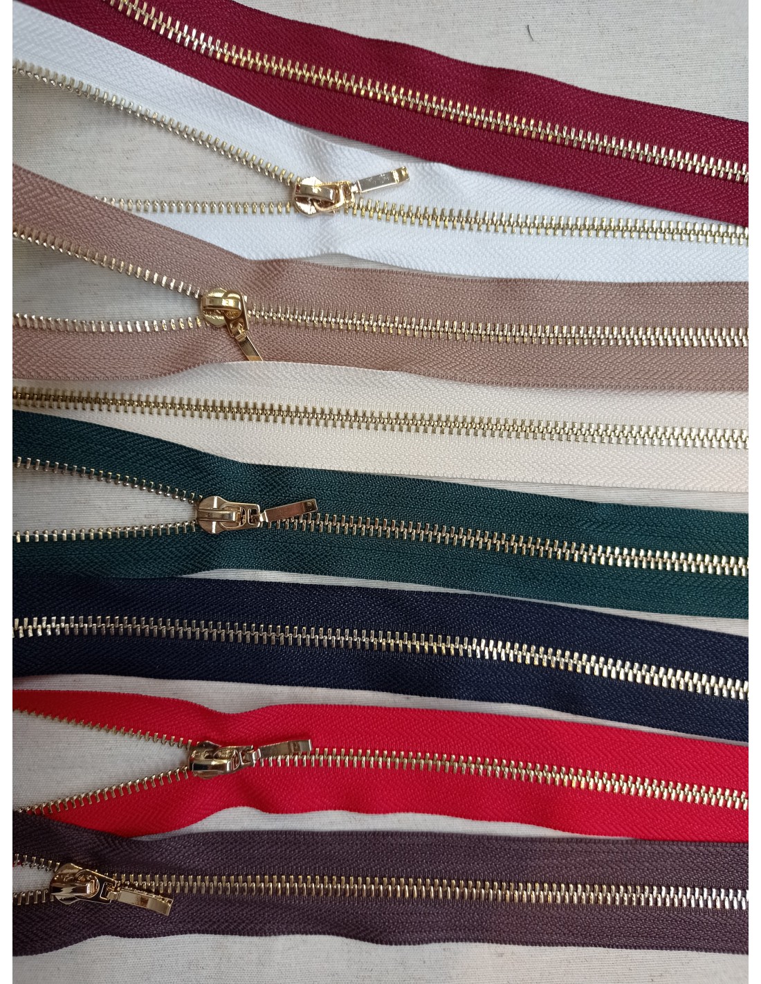 Cremallera con separador en malla de metal dorado champán , muy fina de diseño con un cursor discreto. disponible en distintos colores y medidas 60cm y 40cm