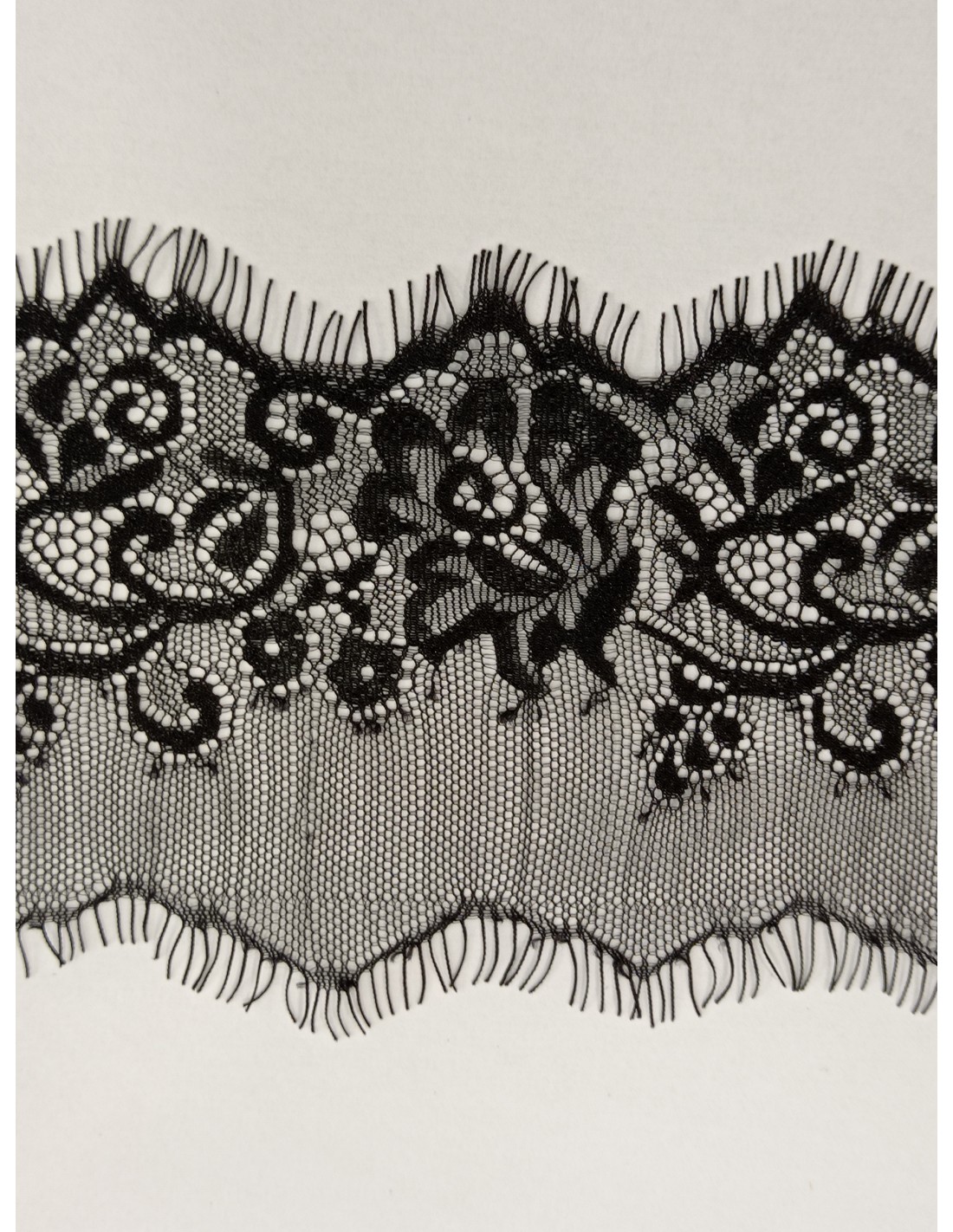 Encaje bordado negro nylon suave con puntas 9cm