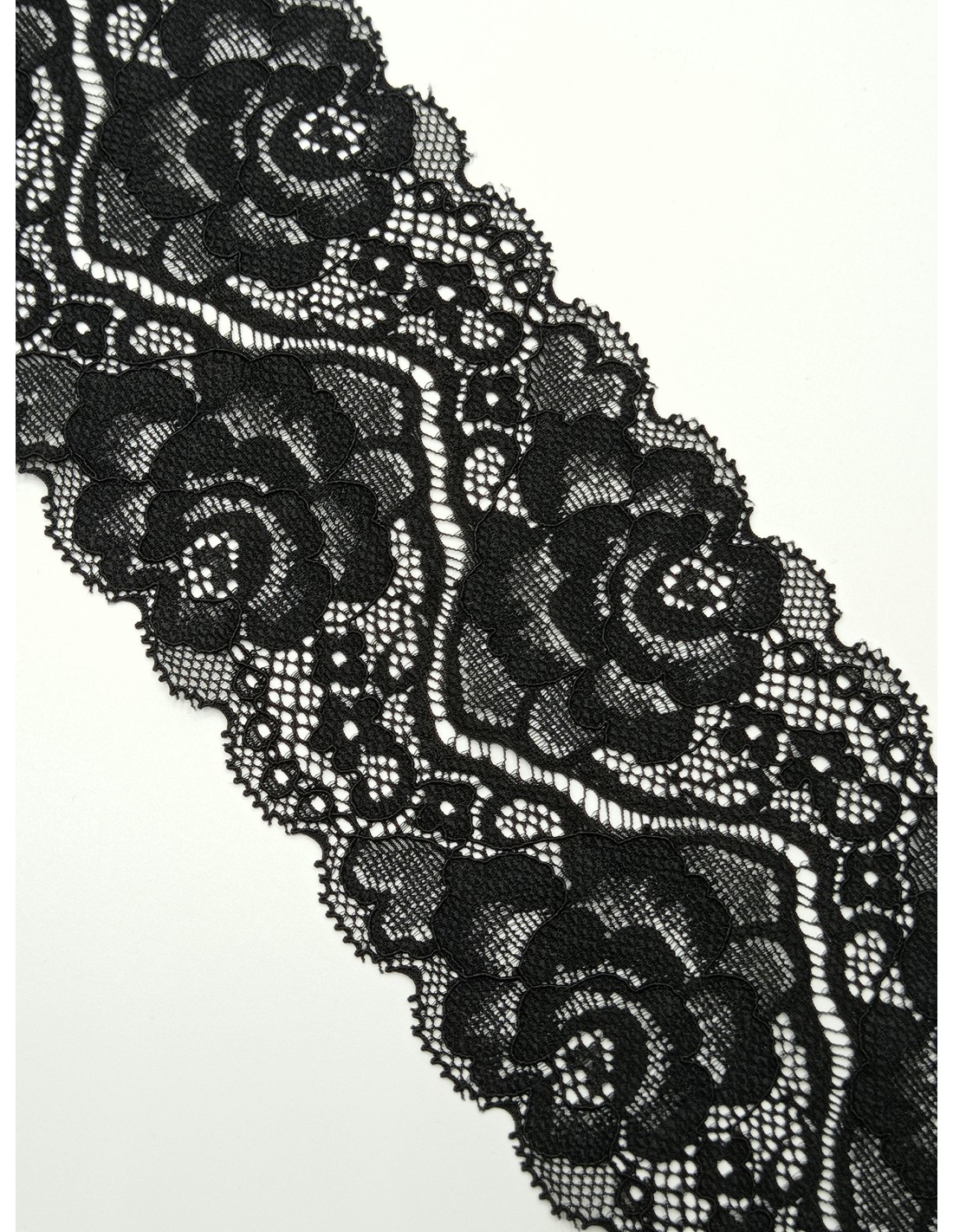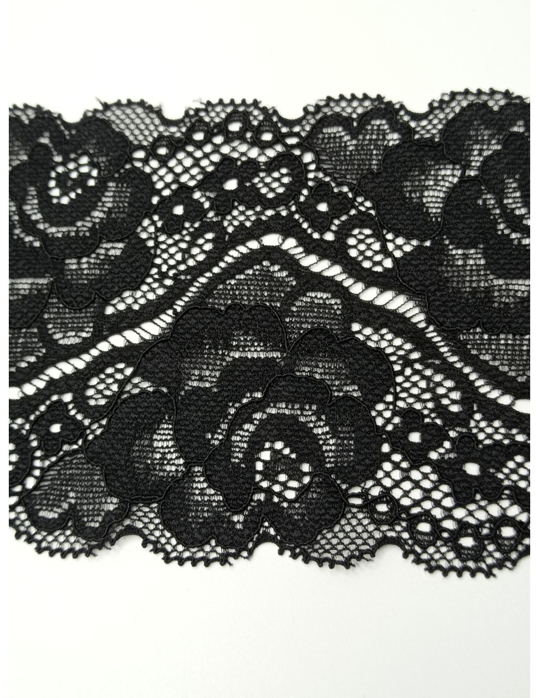 Puntilla nylon elástico de 9 cms de ancho. Es ideal para darle un toque elegante y sofisticado a cualquier prenda. El material de nylon asegura durabilidad y resistencia, se puede usar como entre dos telas o terminando un vestido, blusa, mangas...