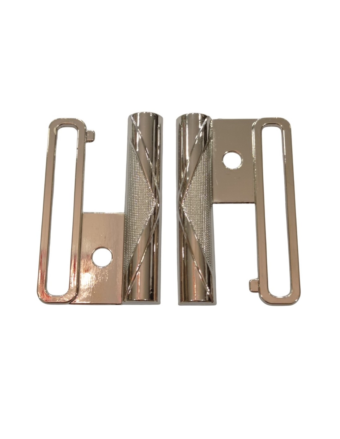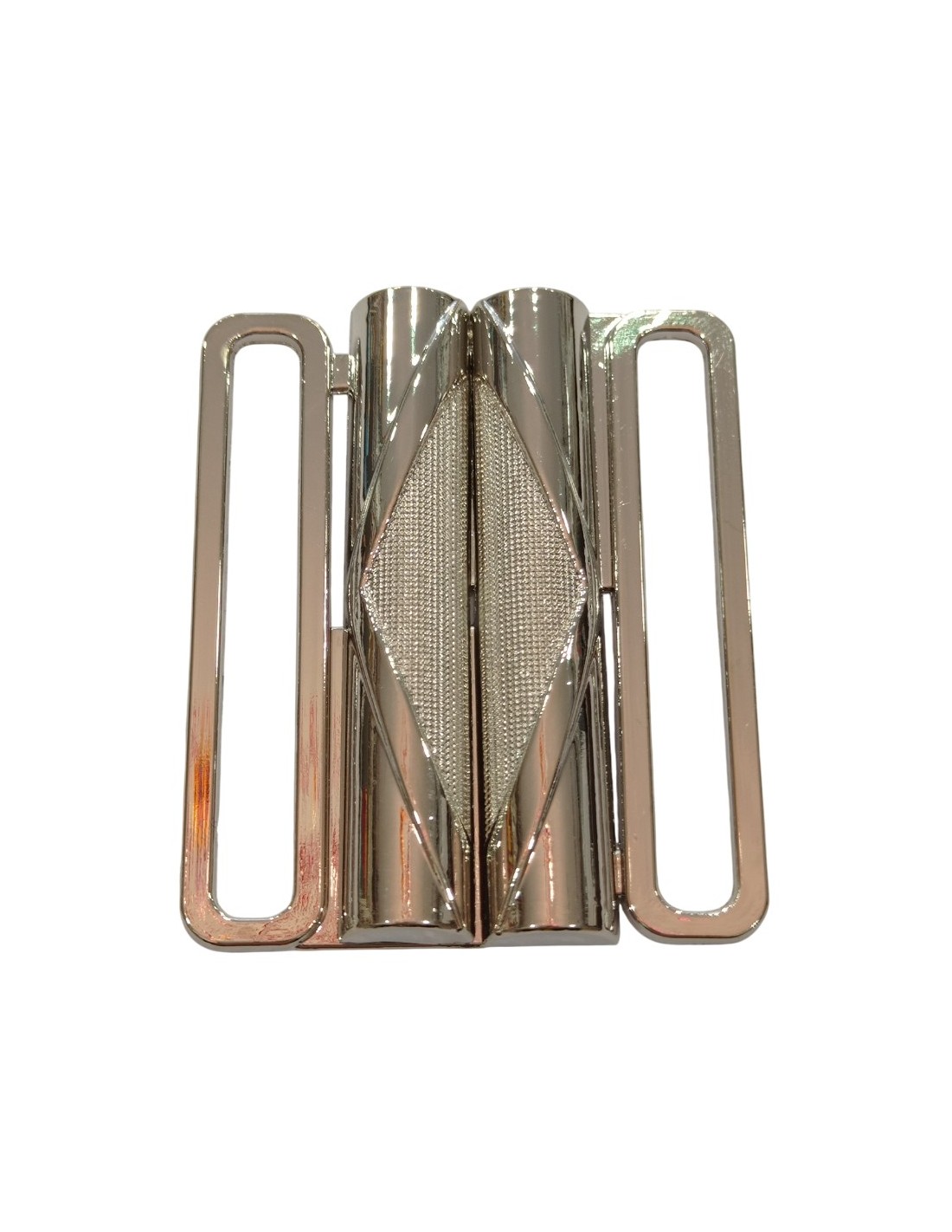 Hebilla ideal para hacer cinturón con goma de ancho 50mm o bien de tela. Engancha uno sobre otro. . disponible en dorado y plateado.