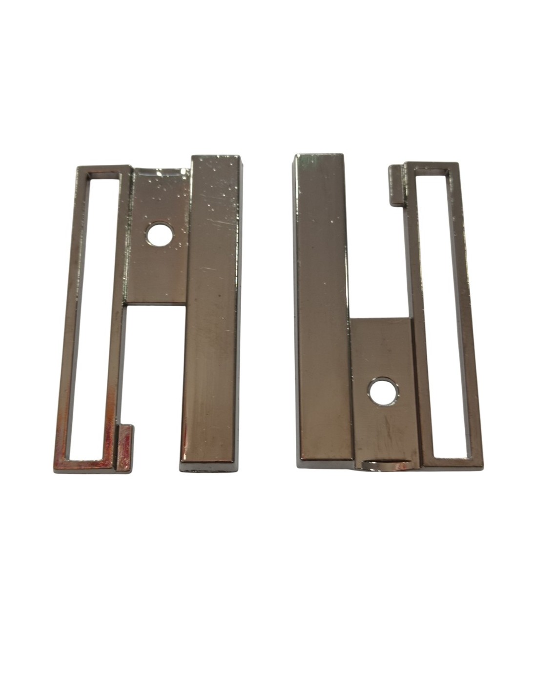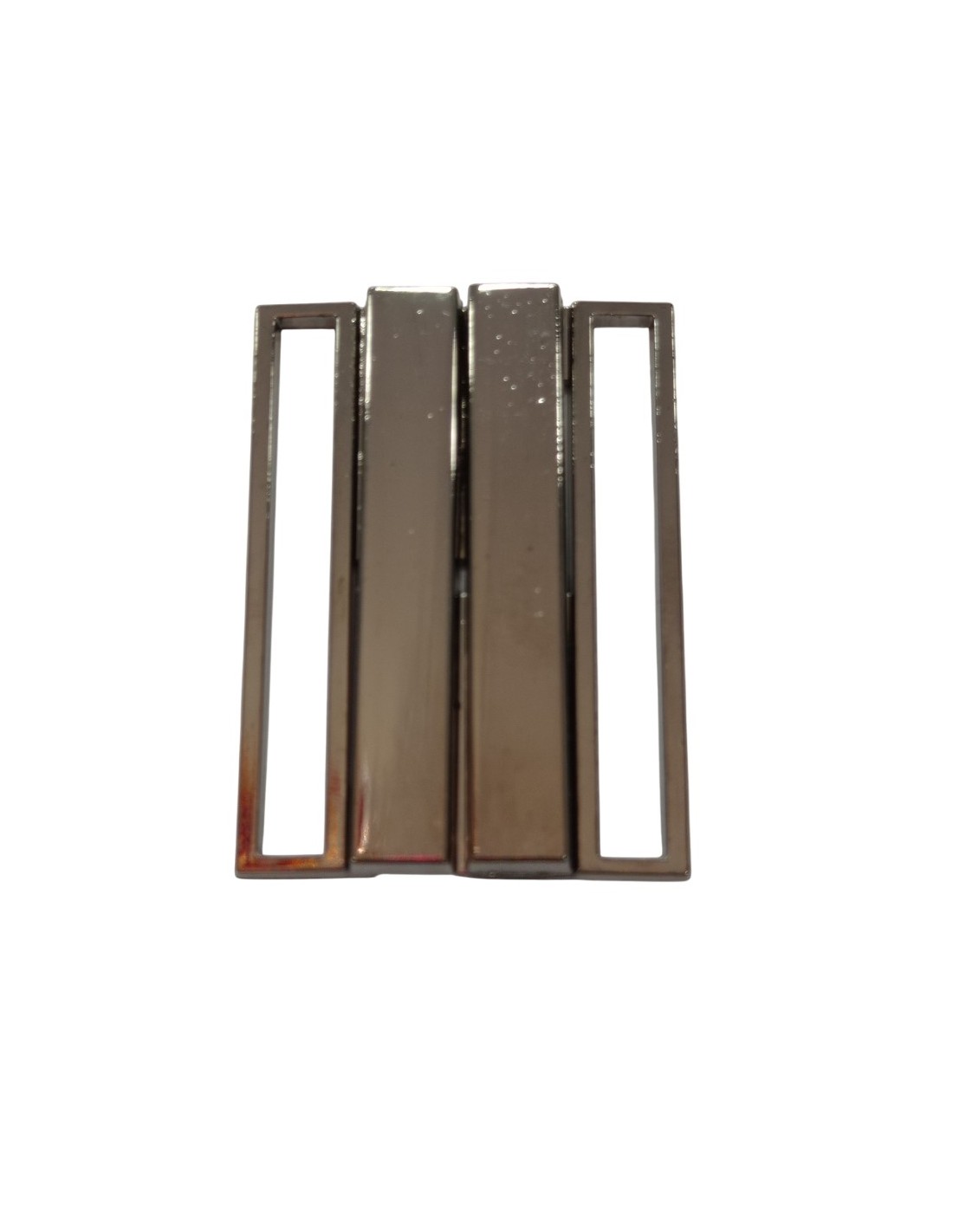 Hebilla plana ideal para cinturones de goma o tela con un paso de 50 mm. Engancha una sobre la otra. Medidas de ancho y alto aproximadamente: 39mmx53mm. Se vende por unidad. Disponible en tres tonos metal: pavonado, dorado y plateado.