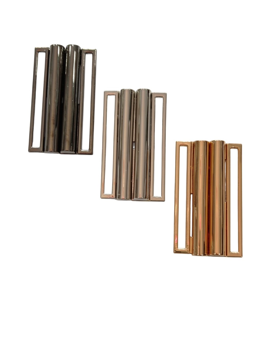 Hebilla ideal para hacer cinturón con goma de ancho 60mm o bien de tela. Engancha uno sobre otro. . disponible en dorado, pavonado y plateado.