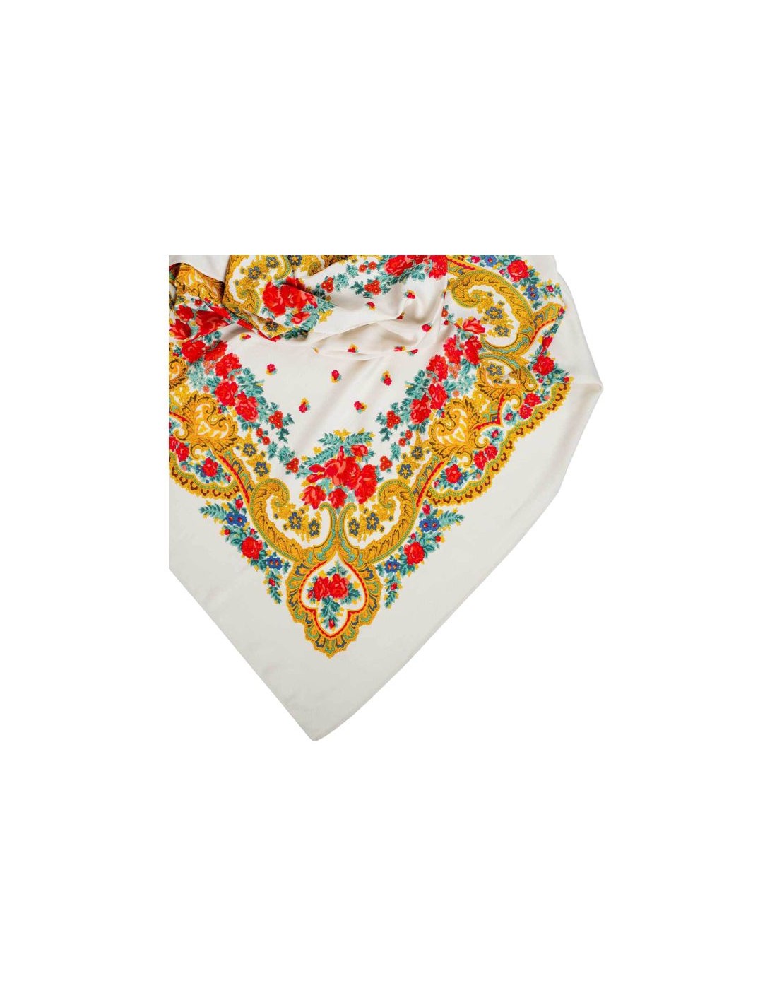 El pañuelo portugués es un complemento clave para la indumentaria tradicional de gran parte de nuestra península. Es utiizado de diferentes maneras, cabeza, como mantón, como fajín, para el cuello y un sin fin, ya que su calidad y caida hace que sea un complemento muy versátil. El tamaño es 90x90cm. Su composición es 100% Viscosa