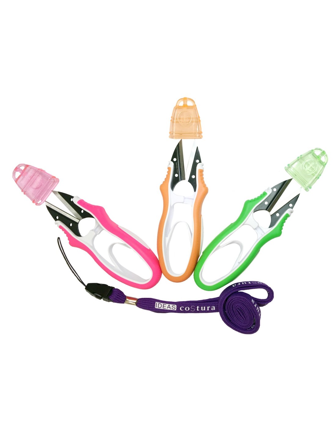 Cortahilos sin mango super práctico que viene preparado para llevarlo colgado. tiene tapa protectora. disponible en naranja, fucsia y verde. el color será según disponibilidad.