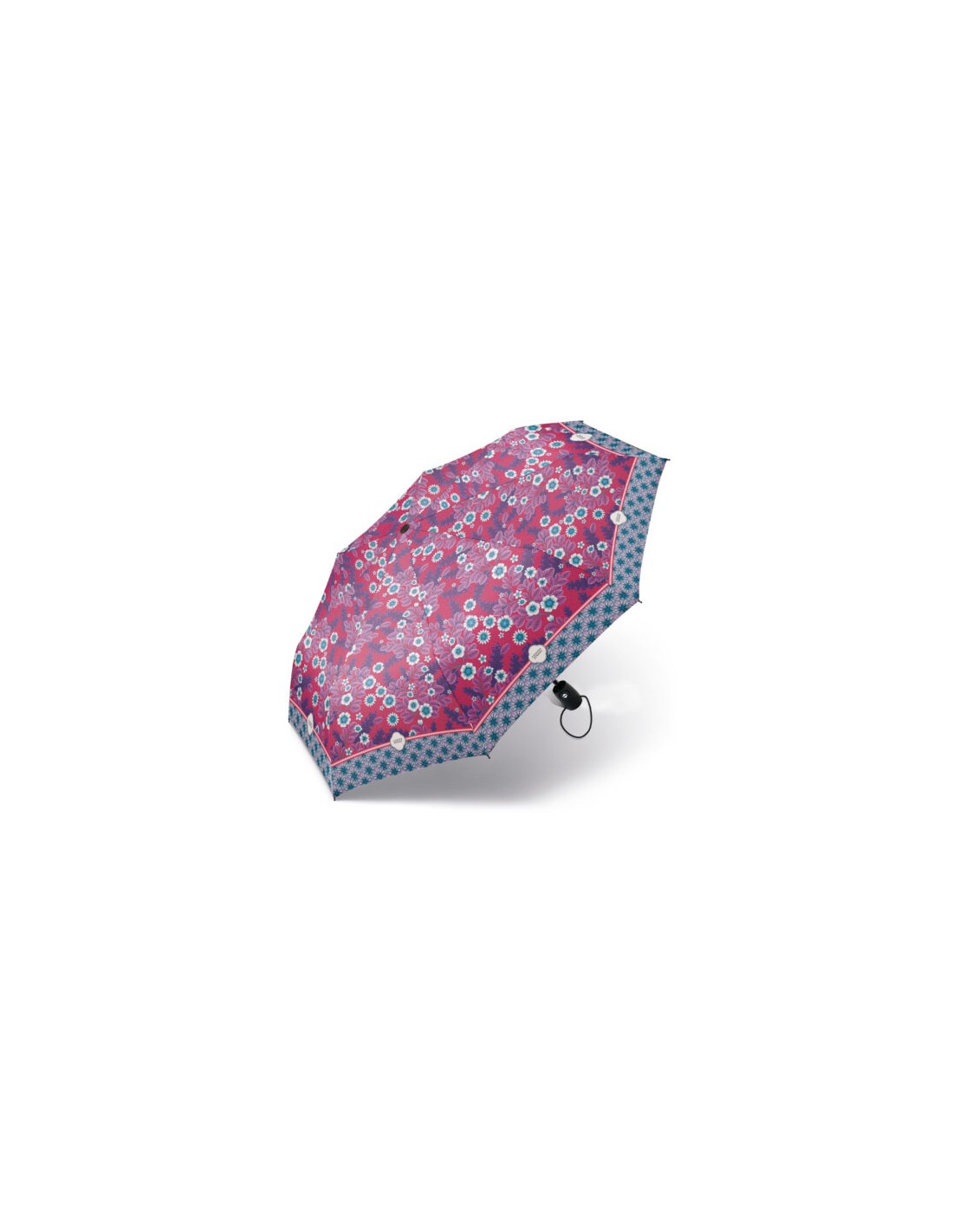 Paraguas plegable con una montura resistente y de calidad con un práctico sistema abre y cierra automático. Sus varillas de fibra de vidrio son resistentes a los golpes de viento. Su  tejido pongee es extra resistente al agua. Paraguas de 8 varillas de 54 cm. Medidas: 28 cm de largo cerrado y diámetro: 96 cm. Tipo de apertura: Abre y Cierra.
