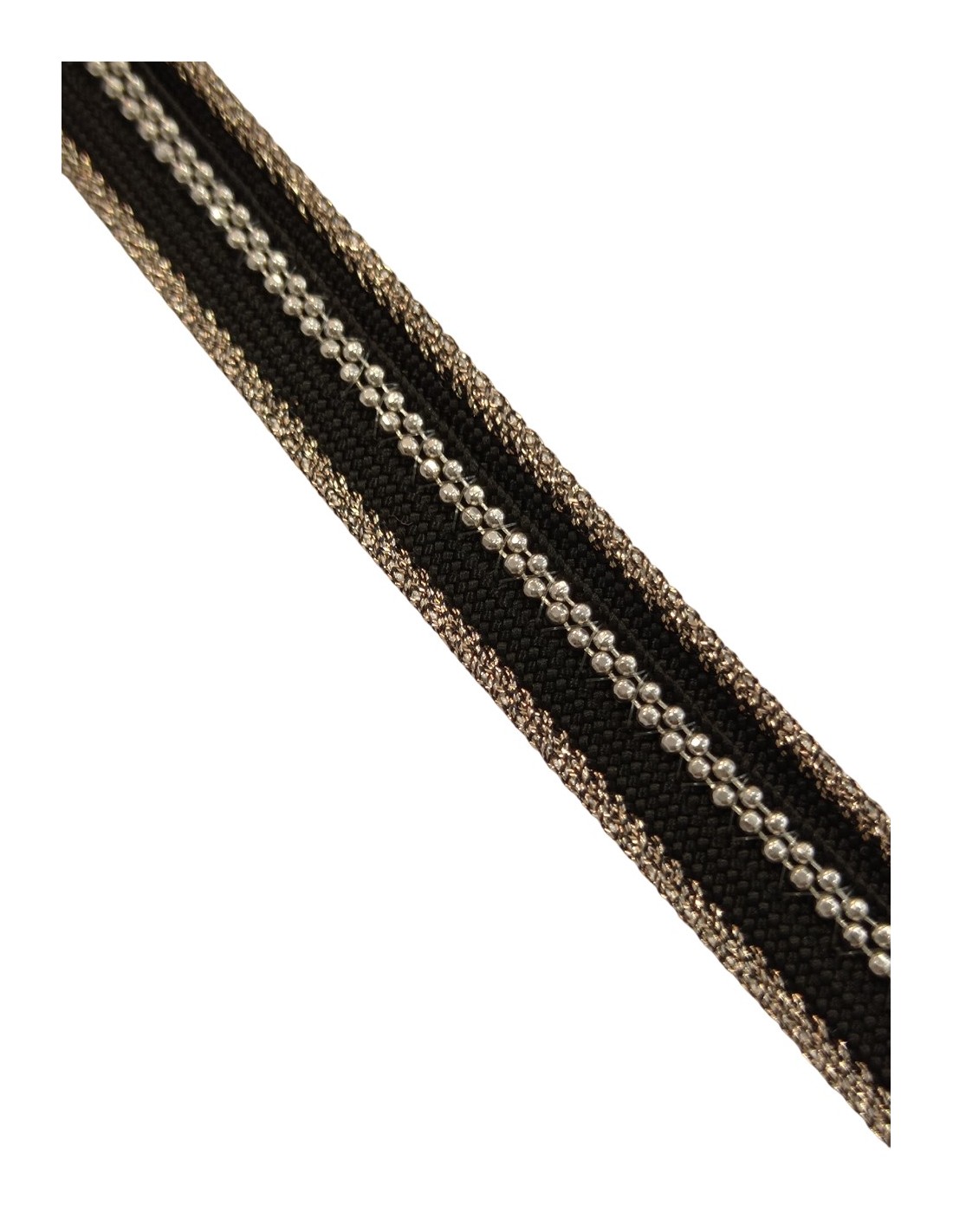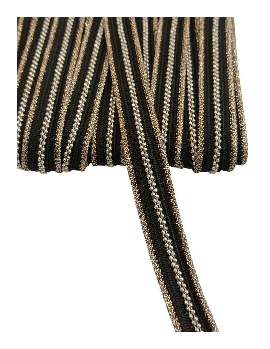 Pasamanería negra con brillos dorados suaves y acero 15mm